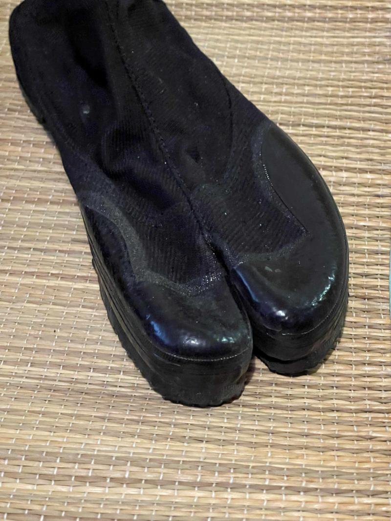 Imperial Japanese Army/Navy style Tabi boots, these are modern reproduction ones, originals rarely survive as rubber rots. Believe they are size 26 Japanese, I think that's about an 8 or 9 ish