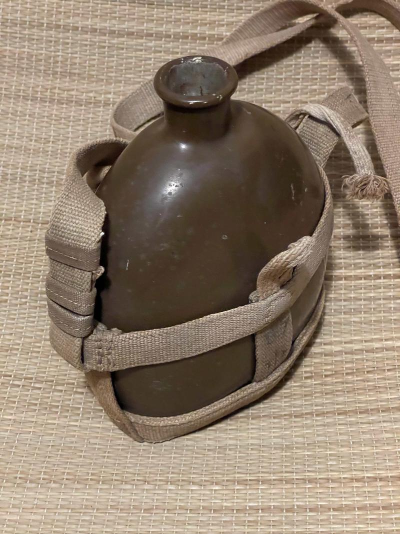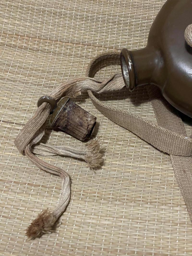 Imperial Japanese Army water bottle, type 94 Army canteen - 1943 version cork stopper and canvas leash.