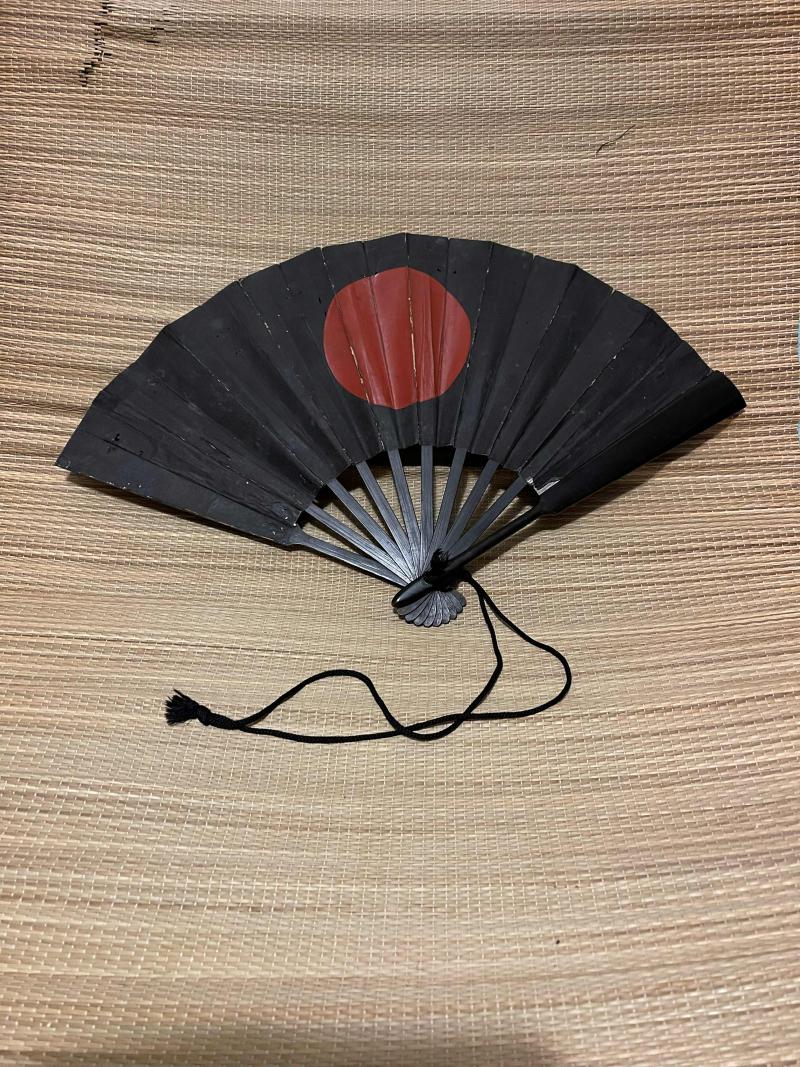 Samurai Fan, original Edo Period Tensu - lacquered wood, military Honamaru