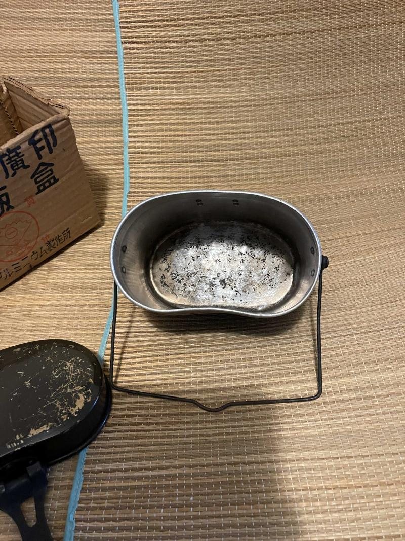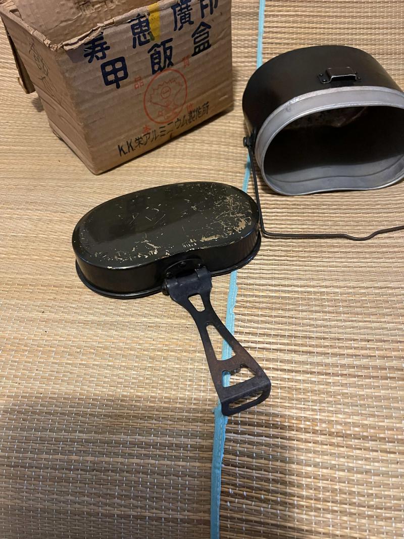 Imperial Japanese Mess tin set boxed, showa 19 and in good used condition. Late handle design.