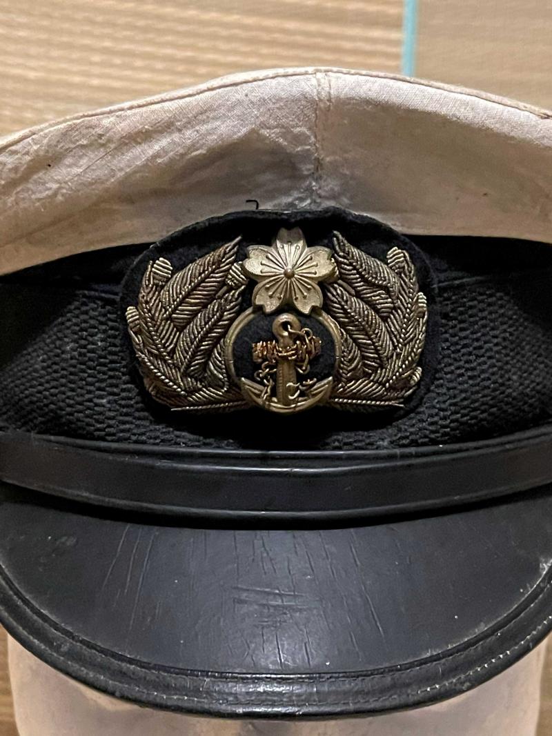 Imperial Japanese Navy Officers type 1 duty cap with name tag inside, in used condition with wear to back of band see pics comes with summer cover attached, looking for good aged item this ones for you.