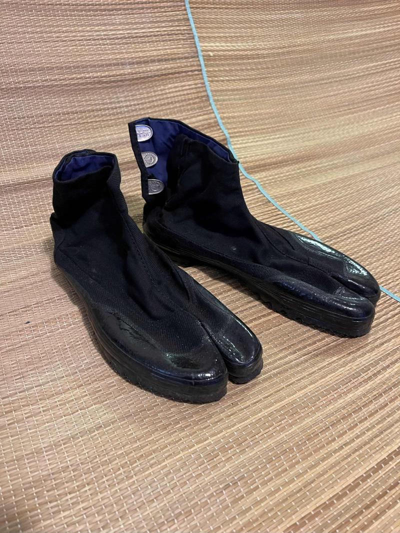 Imperial Japanese Army/Navy style Tabi boots, these are modern reproduction ones, originals rarely survive as rubber rots. Believe they are size 26 Japanese, I think that's about an 8 or 9 ish