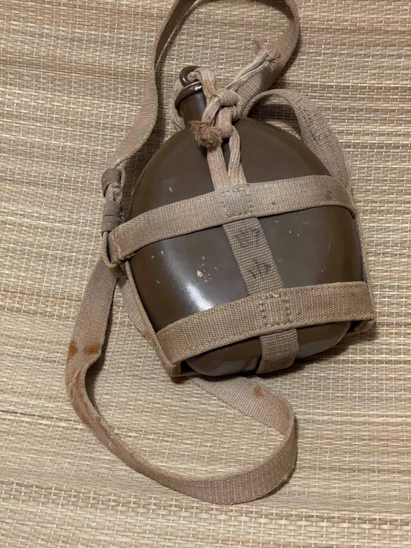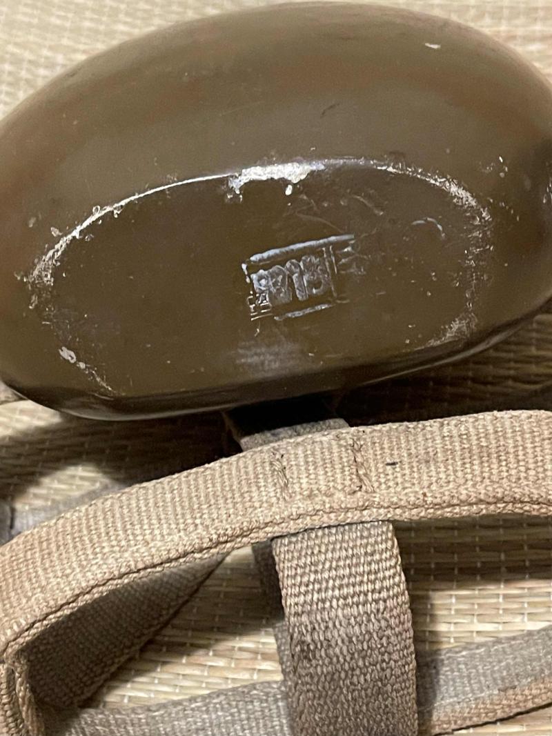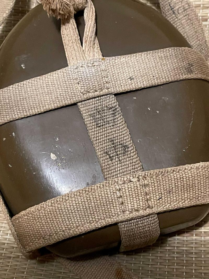 Imperial Japanese Army water bottle, type 94 Army canteen - 1943 version cork stopper and canvas leash.