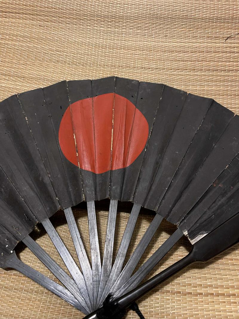Samurai Fan, original Edo Period Tensu - lacquered wood, military Honamaru
