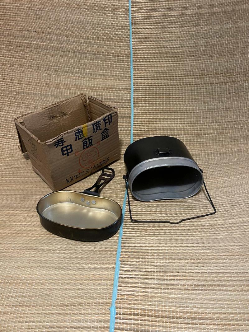 Imperial Japanese Mess tin set boxed, showa 19 and in good used condition. Late handle design.