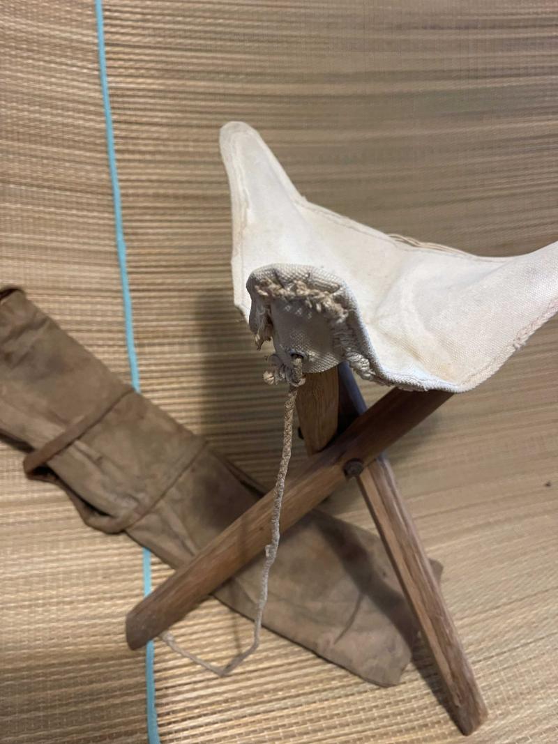 Imperial Japanese Army Officers Portable Campain wooden stool / tripod in original carry case, usually senior Officers kit.