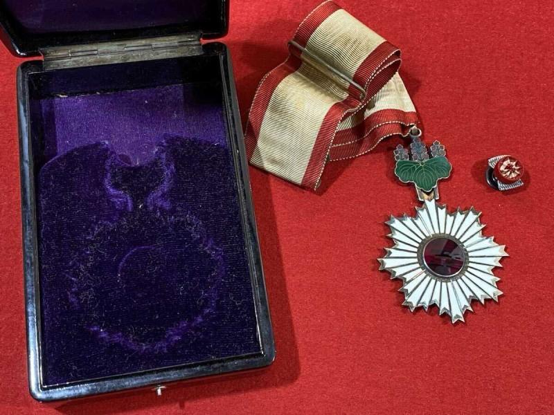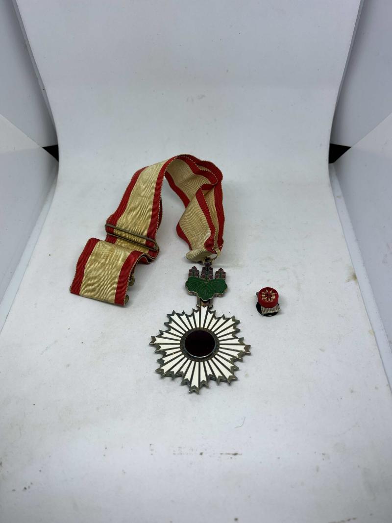 Order of the Rising Sun 3rd class, early version in Lacquered box. Provenance said to be the property of Major General Hiramuki Tsukomo - Fukushima prefecture.