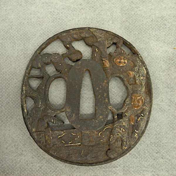 Iron Tsuba Edo - not signed decorated scene - GUAN YU AND ZHANG FEI. Some minor corrosion but will clean up nice.