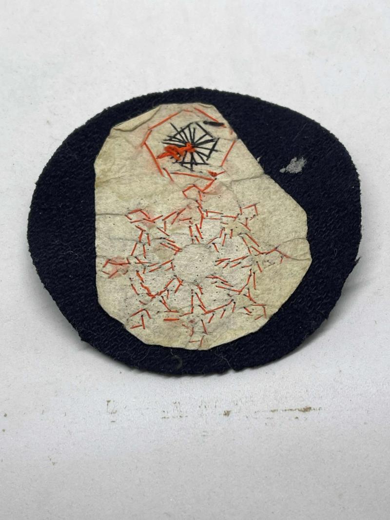 Imperial Japanese Navy EM/NCO sleeve patch for Seamanship elementary level, used on type 1 uniform blues. Some moth damage but rarer patch. NOTE Do have many others available, get in touch if interested.